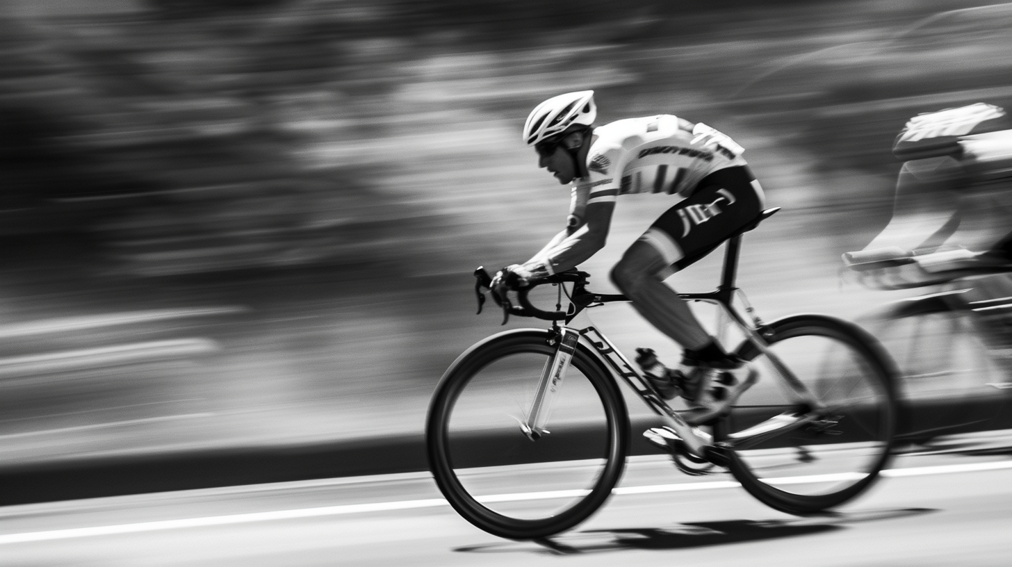 ![]() | The athlete is cycling on the highway with a sense of speed. | |