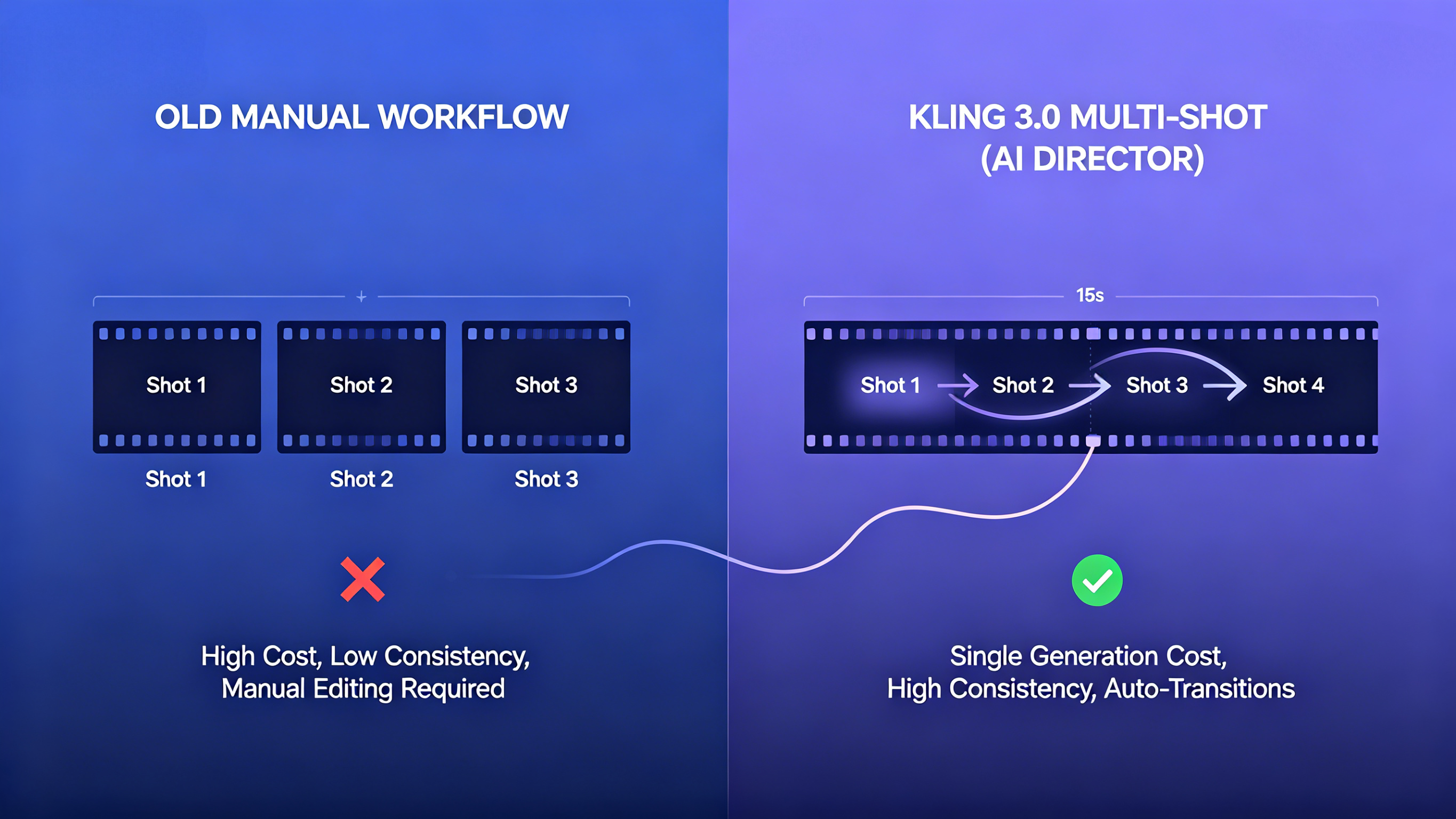There is no extra flat fee for using the Multi Shot feature. The Kling VIDEO 3.0 credit cost remains based on the total duration of the generation. If a user creates a 15-second video with four distinct shots at 1080p with audio, the charge is simply 15 seconds multiplied by 12 credits per second, totaling 180 credits.