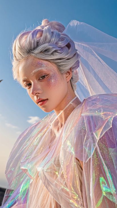 Outdoor solo female portrait. White knit top + white sheer skirt. Light makeup. Hair slightly blowing. Head tilt, eye contact, soft smile. Lean on wooden fence. Relaxed pose. Shoulder toward light. Clean grass field, few trees, pale blue sky. No clutter. Soft high-key light. Slight face overexposed glow. Smooth highlights, soft shadows, good depth. Rule of thirds, subject right side. Shallow DOF, face sharp, bg blur. Airy, soft, gentle vibes. Soft focus, silky, no grain, flawless skin. | Hasselblad cam look. Wide alpine snow peaks. Tall cone main peak, round side peaks. Hard snowlines, dark gray rock texture. High-altitude wilderness. Snow slopes + dark green pine forest. Clear sky, no clouds. Diffused daylight, soft side light, gentle rim on ridges. Premium light feel. Wide tele shot. Main peak centered. Foreground–mid–bg depth layers. Hasselblad blue palette: deep cobalt sky, icy low-sat blue snow, cool-blue rocks/forest. Smooth blue gradation, rich but natural. Eye-level slight upshot. Ultra deep DOF, full sharp. Focus on main peak snowline. Clean, crisp, epic, quiet vibe. Medium-format look. High res, fine detail. Matte snow, soft frosted blues. No grain, strong depth. | Young woman, natural JP no-makeup vibe, black long hair + wispy bangs, light freckles, dark top. Slight side pose, head leaning right, eye contact. Close, eye-level candid shot. Shallow DOF, eyes/freckles sharp, soft background. Heavy film grain, warm tint. | Tabletop still life: glass water cup + dried flowers, wood tray, off-white ceramic mug. Light wood desk, low-sat gray wall, clean background. Soft diffused daylight, smooth shadows. Cool blue glass, warm brown wood, grayish white ceramic, low saturation, rich layers, lifted shadows. Centered, balanced, medium DOF, focus on objects. Calm, fresh, minimal. Light grain. | Shallow creek + green stones + grass meadow + small wildflowers + scattered plants. Clean open field, low hills, light clouds, no clutter. Soft natural daylight, smooth highlights. Clear blue water, bright fresh greens, soft pink/yellow flowers, clean sky blue, medium saturation, vivid but natural. Wide landscape, deep DOF, full sharpness, focus on creek stones. Fresh, calm, peaceful. Fine detail, smooth texture. | Close-up lisianthus bouquet, layered petals, fresh green stems, sharp stamens, full bloom. Plain light gray background, no clutter. Soft side light, smooth shadows, fine petal texture. Low saturation, cool tone, high contrast, silvery highlights, deep blacks. Centered macro, shallow DOF, focus on petals/stamens. Cold, premium, quiet, elegant. Crisp detail. |