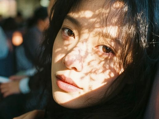 Kodak Portra 400 film look. Girl in loose school uniform, white shirt + blue pinafore, holding fruit. Wind-blown messy hair, head tilted up, relaxed smile. Sunny outdoor, blue sky, clouds, road sign. Bright natural light with soft rim light on hair. Tilted close-up, low angle. Subject lower center, fruit bottom left, road sign upper right. Shallow depth of field, soft background blur. Fresh, airy, youthful, candid. Soft film grain. | An old wooden pier stretches into the lake. Wooden posts wrapped with thick ropes, weeds along the edges. A blurred city skyline in the distance. Quiet, empty, and spacious atmosphere. | Japanese film look. Young woman with bare skin, freckles, long black hair with messy bangs, dark top. Body slightly turned, head leaning right, looking at camera, calm relaxed expression. Indoor public transport, blurred people and walls in background. Soft mixed light, warm and cool tones, dappled tree shadows on her face. Low-saturation warm palette. Close eye-level shot, shallow depth, sharp eyes, soft background. Fine film grain, subtle warm tint. | 3D render, CG modeling. Surreal naturalist digital art. A giant stone human face sculpture floating in a misty forest. Sunlight pierces the canopy, forming volumetric light beams through the trees. | A beautiful European woman in a vintage white dress crouches by a forest lake, lifting water with her hands. Water splashes outward across the surface. Dreamy lakeside forest setting, natural side light, realistic photography. | Nostalgic Ricoh camera filter. Old-town alley with red brick walls and wooden windows. Rattan chair and metal cans by the roadside. Candid street scene, no posing, everyday life details. Soft diffused alley light, gentle contrast, clear textures. Warm yellow tones, faded reds and browns, low saturation, vintage digital feel. Deep depth of field, focus on old street objects. Moody, nostalgic, relaxed, documentary style. |