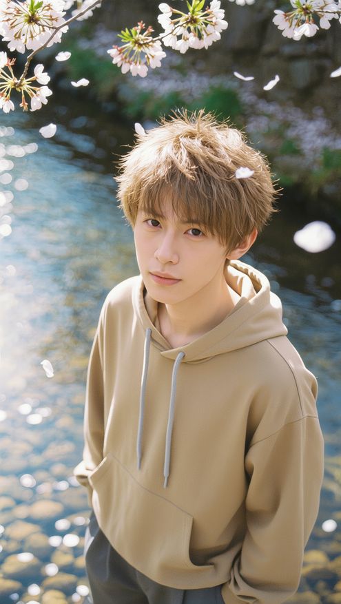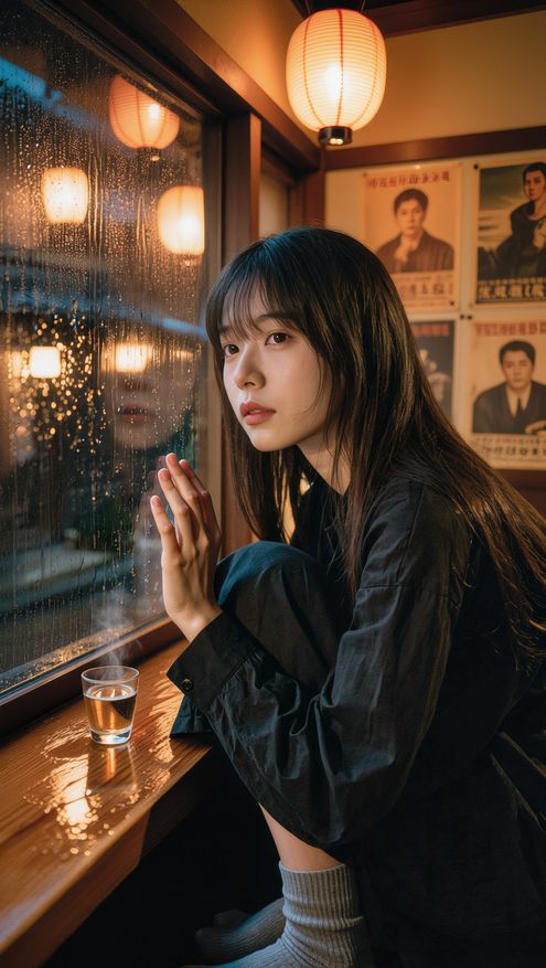 Prompts | Change the light blue sakura yukata to a pale pink daisy-patterned yukata with silver threading, leaving everything else untouched. | Move the character from a window-side standing pose to sitting at an Izakaya bar with an elbow on the counter and warm sake nearby; update the background from a quiet room to a vibrant Izakaya interior with yellow lanterns and vintage posters. | Swap dark brown messy short hair & linen shirt/apricot chinos for light ash-gold messy short hair + khaki oversized hoodie (with grey drawstrings) & dark grey wide-leg trousers. | |||
