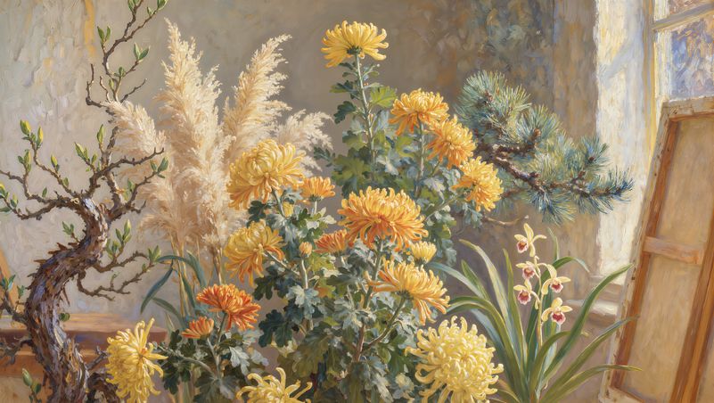 A bright, youthful bedroom close-up. Sunlight filters through peach-pink sheer curtains, casting a warm pink-orange glow. Small succulents on the desk pick up soft pink tones. Airy space with smooth pink-to-orange color transitions. Lively, cozy, and soothing atmosphere with soft textures. | A quiet late-fall study filled with warm, saturated orange tones. Sunlight filters through golden leaves outside, casting dappled orange shadows across a mahogany desk. The atmosphere feels warm, dense, and contemplative, evoking slow seasonal change and peaceful reading moments. Highly realistic texture, with dust particles drifting in the glowing light. | A minimalist modern bedroom dominated by soft, low-saturation gray tones. A gray-blue headboard wall, dusty rose bedding, and oat-colored curtains blend gently under diffused natural light. No harsh contrast, only smooth tonal transitions. The space feels quiet, restrained, and refined, with a premium matte texture throughout. | A dreamy corner of a children's room bathed in soft pastel light. A pale pink wooden rocking horse rests on a sky-blue carpet, surrounded by evenly blended pink and blue tones. No heavy shadows, only gentle, diffused light. The space feels warm, sweet, and comforting, with a clean, delicate, high-quality finish. | A mountain cabin terrace at dawn, softened by light mist. Purple wildflowers fade in and out through the gray haze, while a painted wooden railing catches a cool, subdued sheen. The light is extremely gentle and diffused, washing the entire space in a quiet lavender tone. The atmosphere feels noble, calm, and meditative, with a sense of elegant isolation. | At the edge of a vast wheat field, the setting sun pours golden light across the landscape, unifying everything into a rich harvest tone. Rolling waves of grain ripple in the wind, each strand catching bright yellow highlights like flickers of fire. The distant horizon dissolves into radiant gold, blurring the boundary between earth and sky. The scene feels epic and almost sacred, where knowledge, nature, and light converge into a majestic rural tableau. Colors are highly saturated, luminous, and dense, with a cinematic sense of scale and depth. | A minimalist modern industrial office unfolds in restrained tones, defined by exposed concrete columns, muted gray workstations, and subtle stainless-steel accents. The space feels structured and rational, where clean lines and geometric order replace decoration. Natural light is softened and filtered, reducing contrast while preserving the fine textures of concrete, metal, and matte surfaces. Shadows remain gentle and controlled, emphasizing material depth rather than drama. The overall atmosphere is calm, efficient, and distinctly modern, expressing a professional aesthetic that feels cool, durable, and quietly refined. |